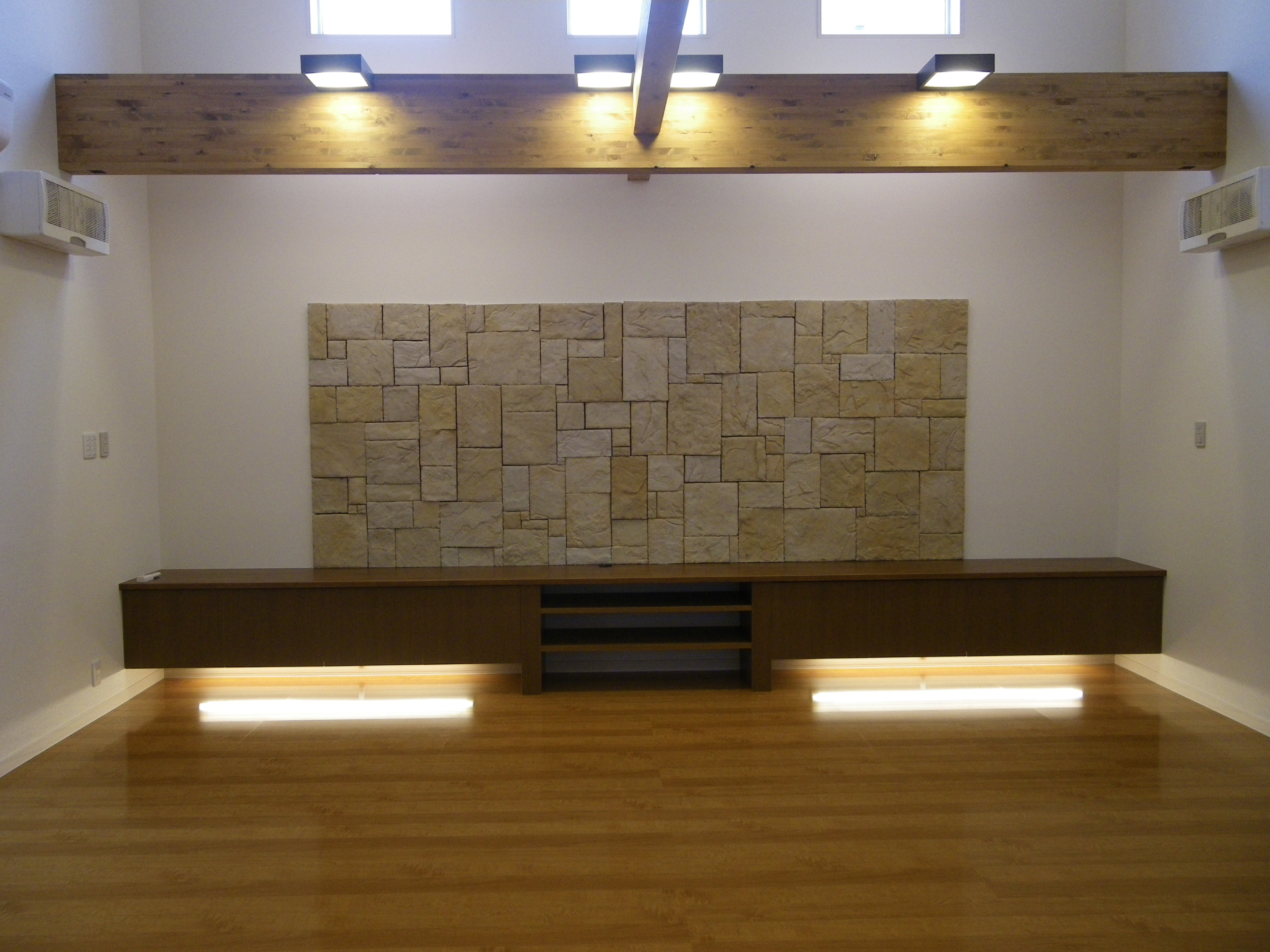 テレビ台の後部には輸入人工石カルチャードストーンが貼ってあります