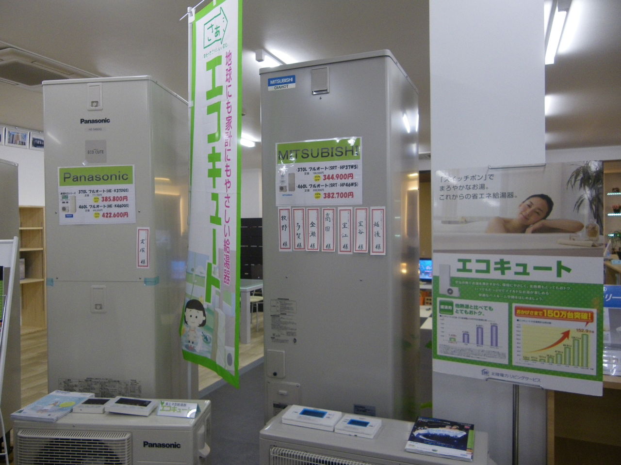 エコキュートやIHクッキングヒーター、内窓、トイレ、洗面台などたくさんお申し込みをいただきましたお申し込み頂いた商品には赤札を付けました
