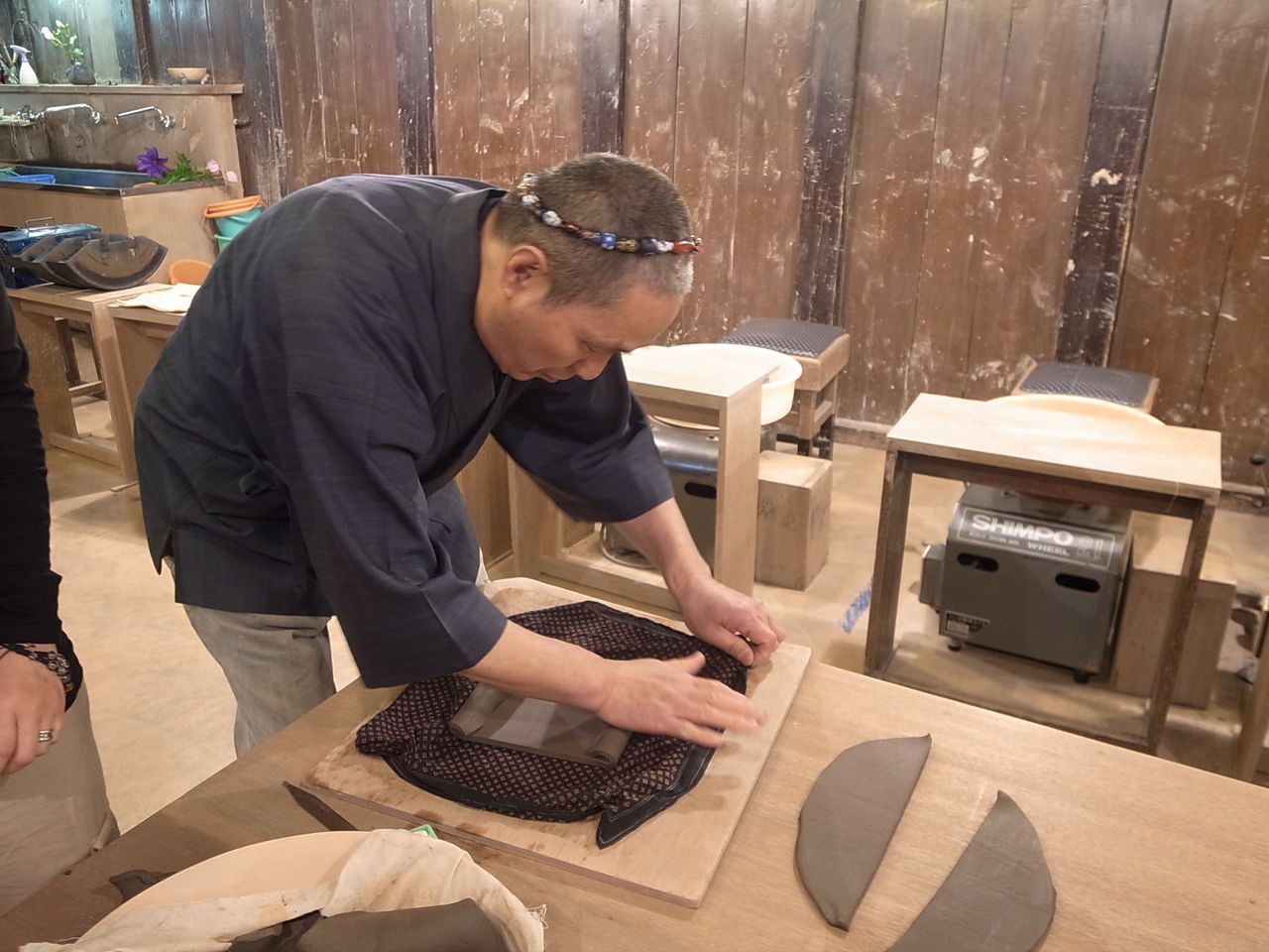 先生自ら陶芸とはって感じで土を練って形にするところを実践してくださいました土の事、作り方の事、焼き方、色づけなど多くの事を学びました