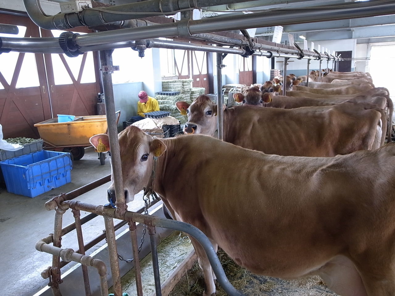 餌を買おうとしている私の姿を牛全員が熱い視線をおくっています