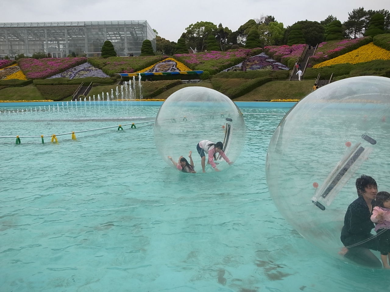おまけに水に浮かぶボールのような乗り物があったので子供たちが乗りましたさすがに親の遺伝かバランス感覚が悪い・・・