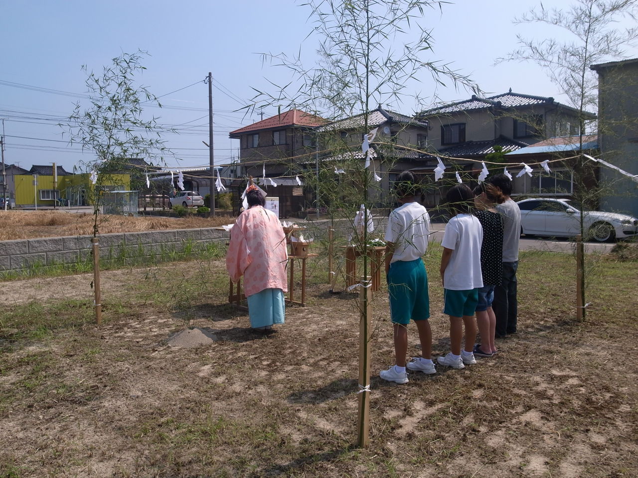 とても暑い日でしたが、滞りなく地鎮の儀を執り行っていただきましたのでこれから着工に向けて進めていきます現在、このエリアではこの他に新築2棟が建築中なので同地区では3棟のプロデュース設計施工による新築をご覧いただけることになります
