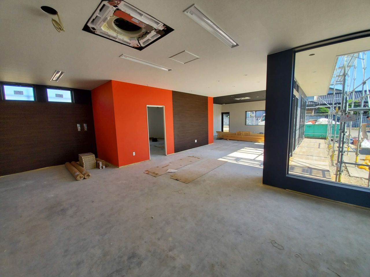 工事現場は外装もほぼ仕上がり、内装にいたってはあとは床を仕上げれば完成となります