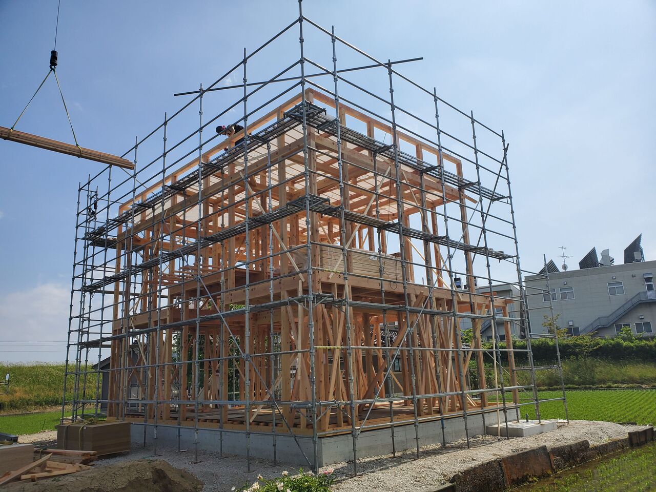 終日、夏を思わせるような晴天の中、上棟をさせていただきました