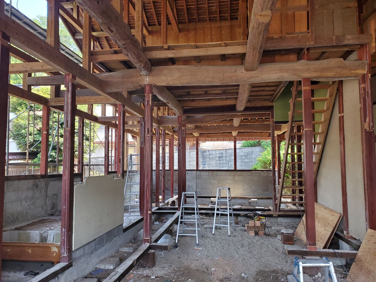 ここから耐震性、耐久性を高める基礎や構造体の補強ややり直しを施していき、これまでの間取りから大きく変えていきます