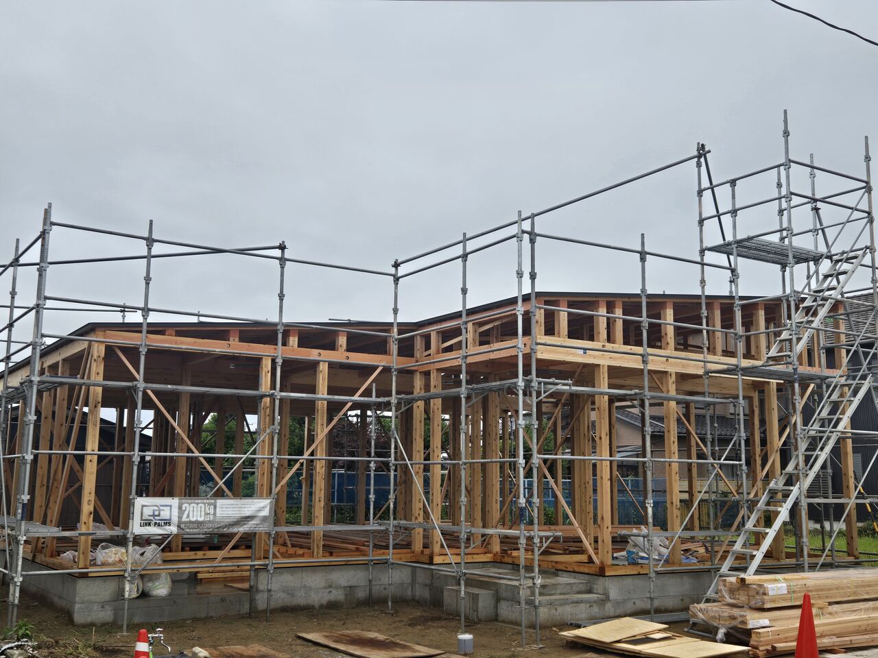 朝から生憎の雨ではありましたが作業は順調に進み、夕方までには屋根の防水紙まで充てることが出来ましたのでこれで雨が降っても安心できます